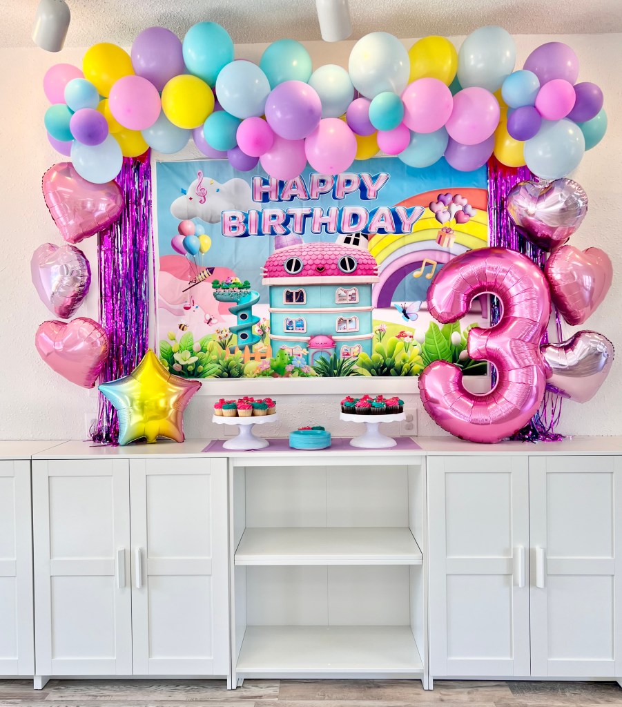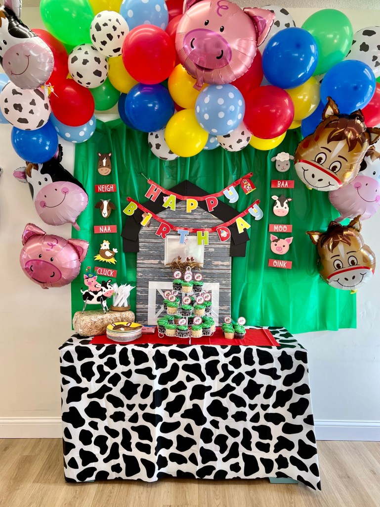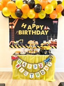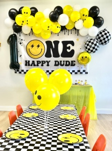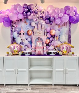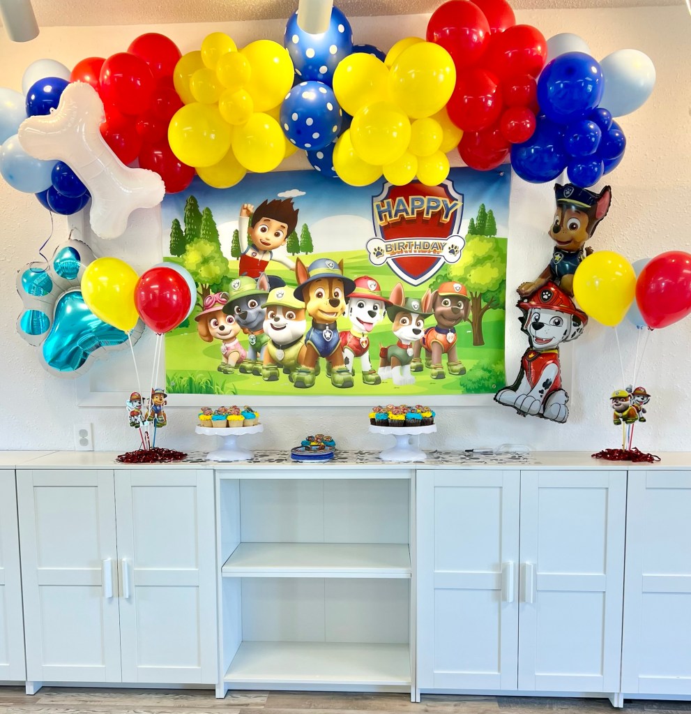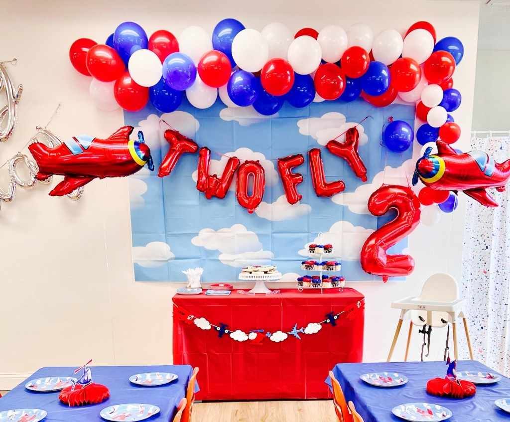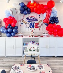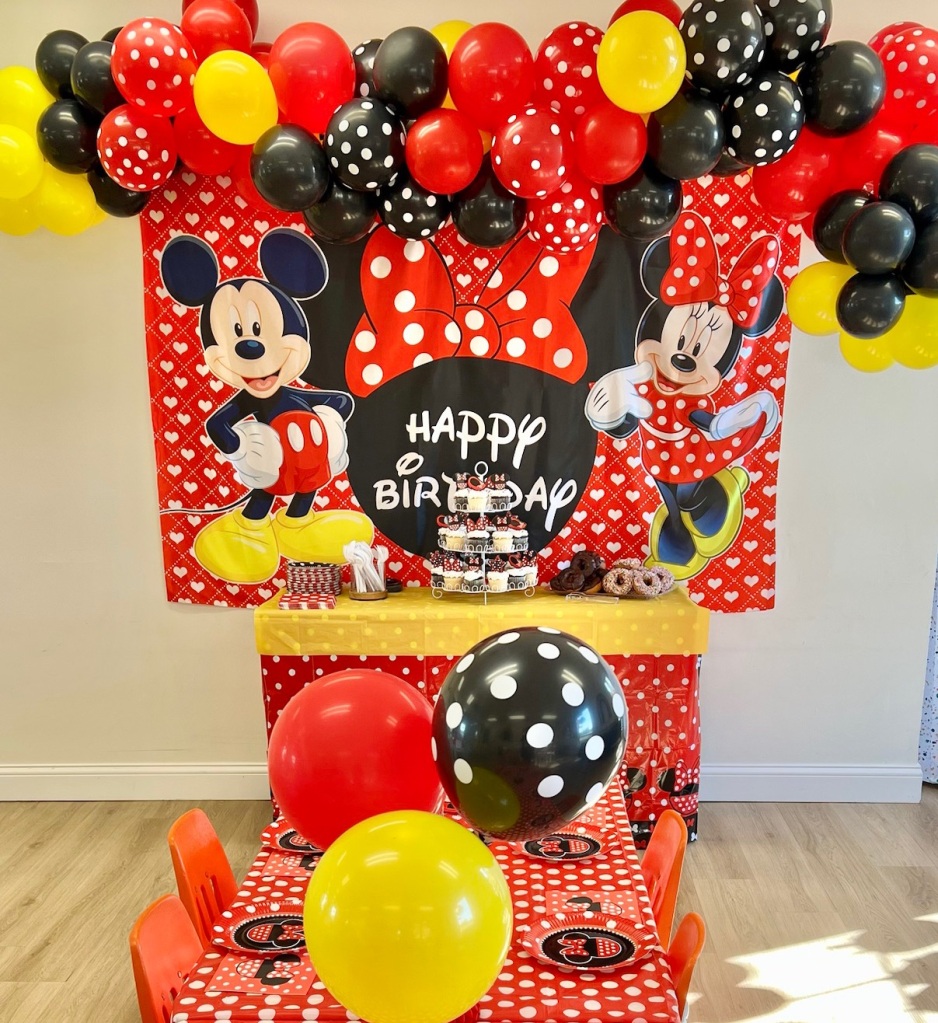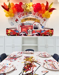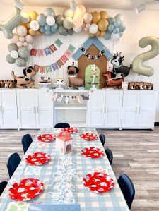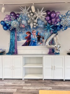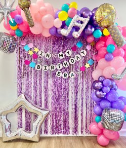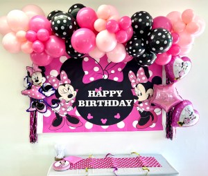 - Themed Decor to include backdrop, small balloon garland, balloon bouquets on tables, themed paperware, and extras to make the party special!