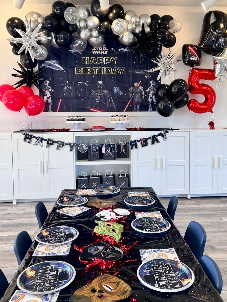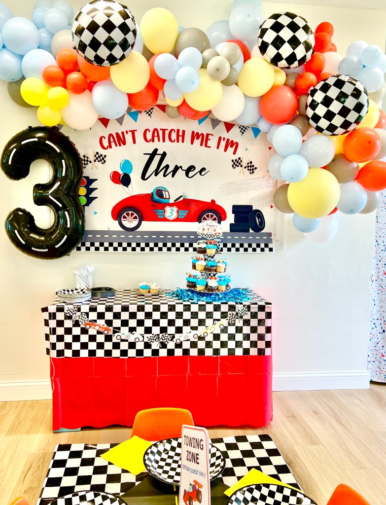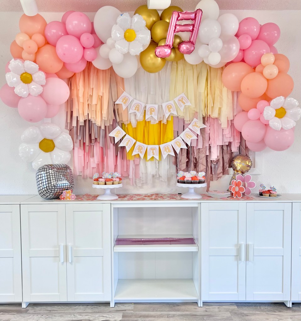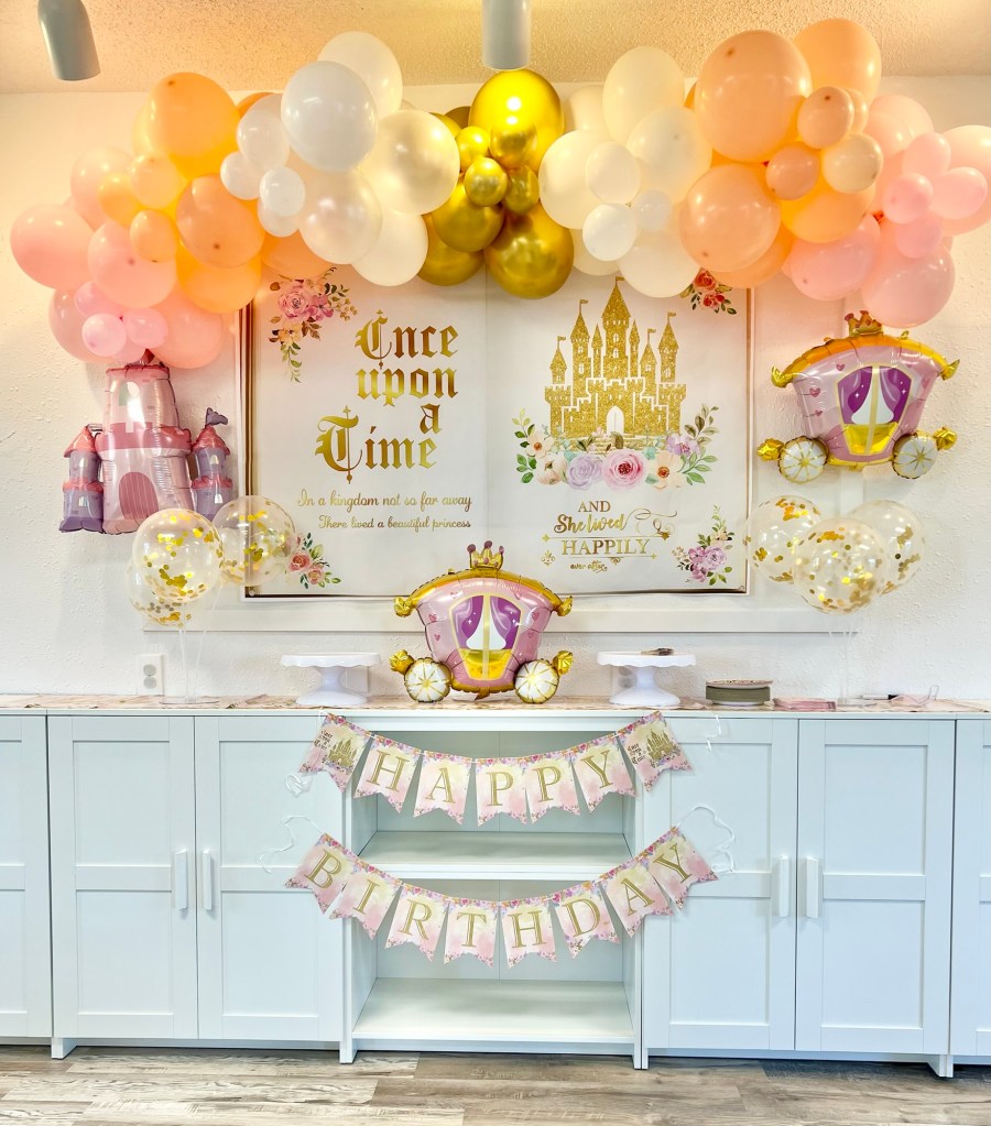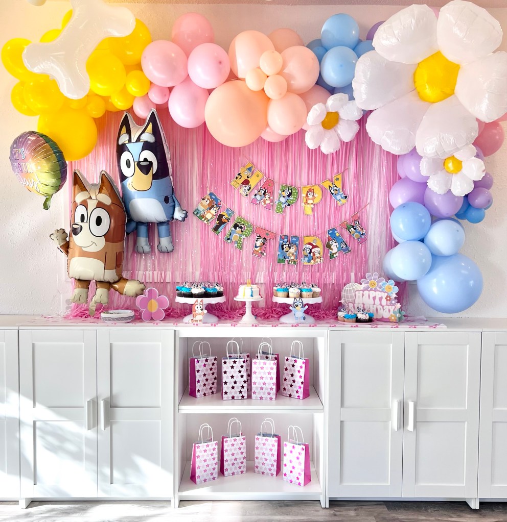 - Themed Decor to include backdrop, small balloon garland, balloon bouquets on tables, themed paperware, and extras to make the party special!
